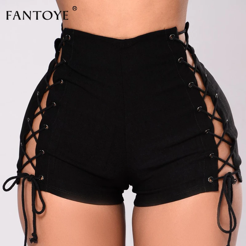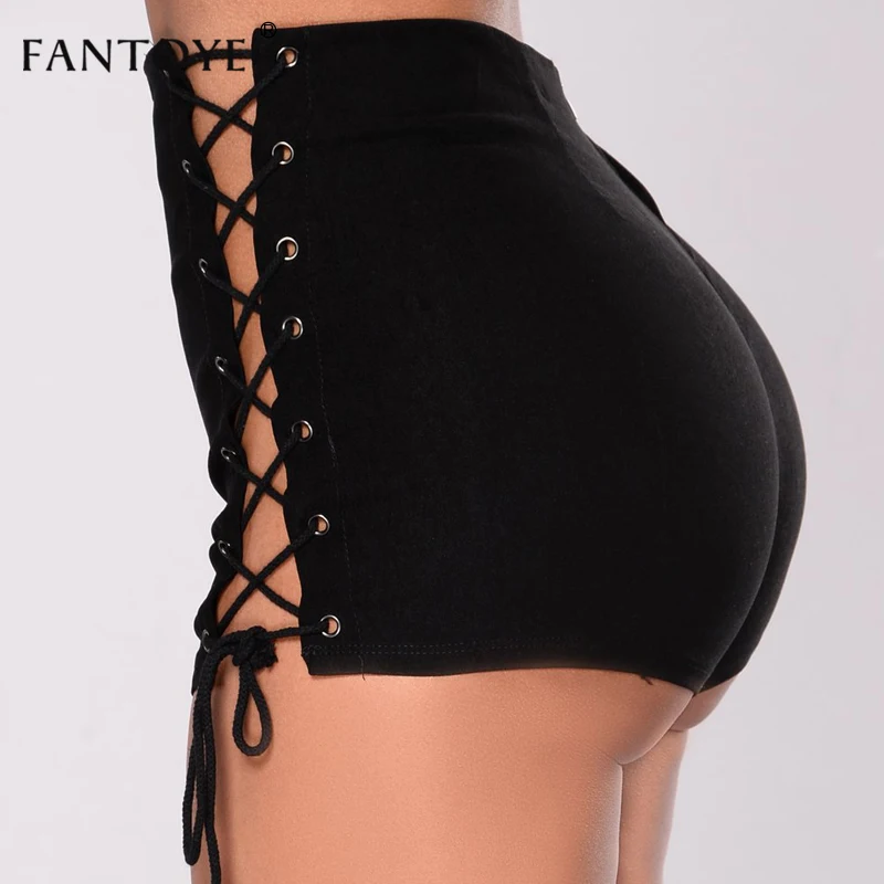 price cut Fantoye Sexy Lace Up Women Denim Shorts Jeans 2018 New Bandage Punk Slim Black Female Short Pants P